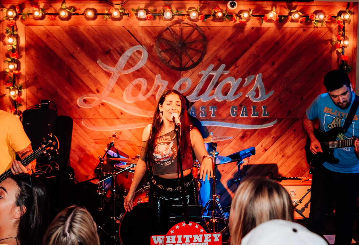 Cocktails, frozen drinks, whiskey flights — country style. Try the Loretta’s Lemonade.
